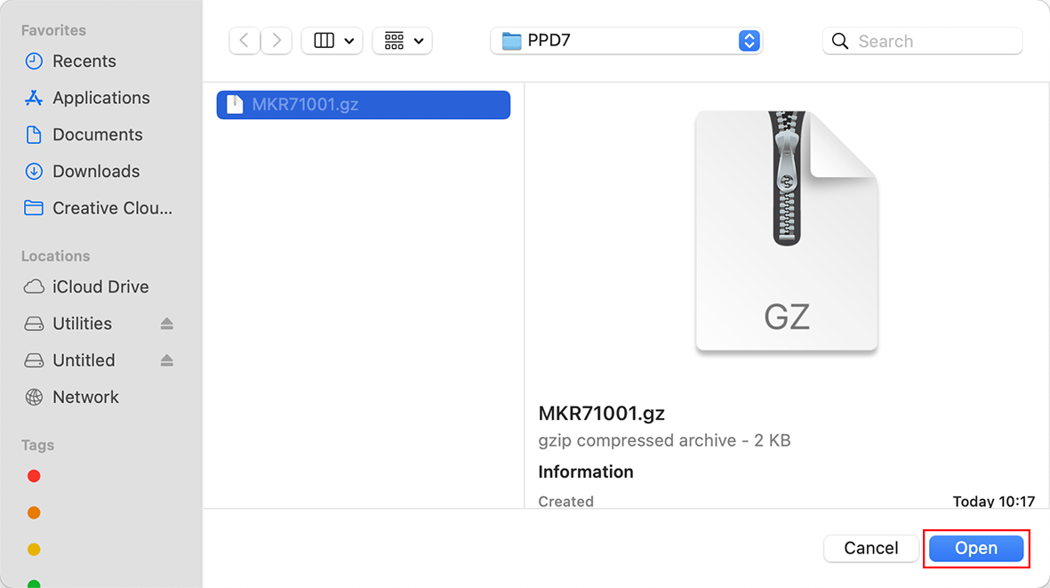 When "MKR71001.gz" cannot be selected
