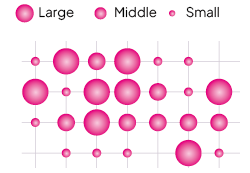 Three precisely controlled droplet sizes are combined to produce smooth, even solid areas. Larger droplets provide coverage, while smaller dots refine details to create rich gradations and outstanding image quality.