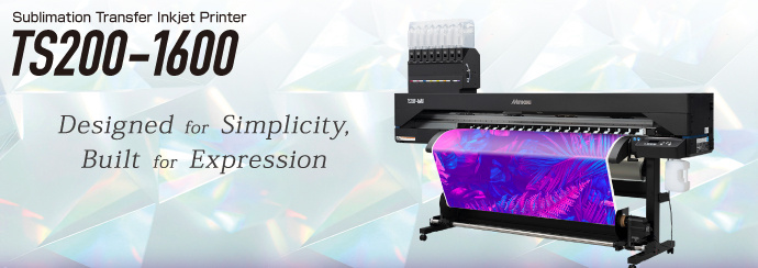 "TS200-1600" is a dye sublimation inkjet printer for textiles and apparel that enables even first-time users to easily achieve high-quality prints.